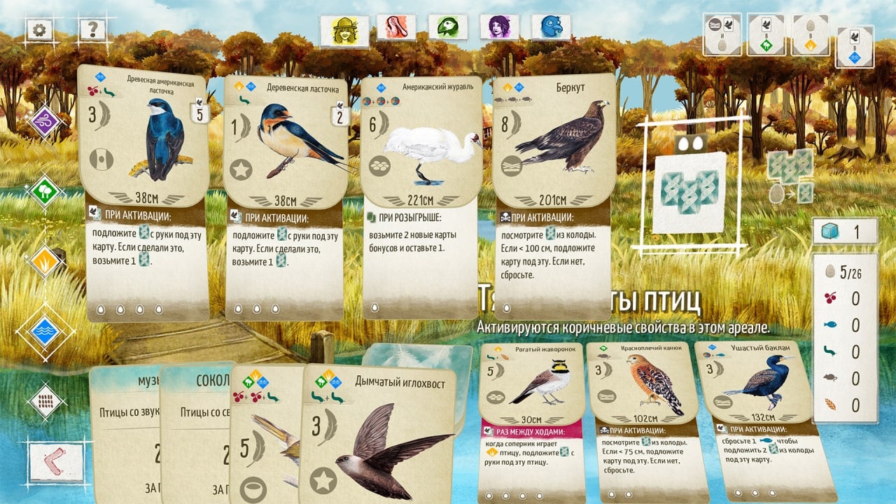 WINGSPAN (КРЫЛЬЯ) представляет собой вдумчивую стратегическую игру, созданную по мотивам одноимённой настольной игры, завоевавшей мировую популярность благодаря уникальной тематике и продуманным игровым механикам. В цифровой версии для PC игроку отводится роль орнитолога, занимающегося развитием собственного природного заповедника и изучением разнообразных видов птиц со всего мира. Сюжет в классическом понимании отсутствует, однако кампания формируется через последовательное развитие коллекции, выполнение целей и постепенное расширение возможностей, что создаёт ощущение осмысленного прогресса. Мир игры построен вокруг трёх ключевых сред обитания — лесов, лугов и водоёмов, каждая из которых обладает собственными особенностями и влияет на стратегию игрока. Игровой процесс основан на сборе карт птиц, каждая из которых имеет уникальные свойства, стоимость розыгрыша и способности, активирующиеся при определённых условиях. Геймплей строится на создании эффективных цепочек действий, где грамотное размещение карт и последовательность ходов определяют успех партии. Механика игры поощряет стратегическое планирование, анализ ресурсов и адаптацию к постоянно меняющейся ситуации на столе. Система прогресса реализована через постепенное открытие новых карт, бонусов и возможностей, позволяя с каждой партией углублять тактические решения. Особое внимание уделено вариативности, так как каждая сессия формируется случайным набором карт и целей, что делает каждую партию уникальной. Атмосфера WINGSPAN (КРЫЛЬЯ) отличается спокойствием и медитативным темпом, подчёркнутым художественным оформлением, детализированными иллюстрациями птиц и ненавязчивым звуковым сопровождением. Игра поддерживает как одиночный режим против искусственного интеллекта, так и сетевые матчи до пяти человек, что позволяет соревноваться с друзьями или случайными соперниками. Дополнительные материалы и расширения из Special Edition значительно увеличивают глубину стратегии и количество доступного контента. Проект ориентирован на любителей интеллектуальных игр, ценящих тактику, вариативность и неспешный, но насыщенный игровой процесс. Пользователи могут скачать торрент WINGSPAN (КРЫЛЬЯ) полной версии на русском языке бесплатно для PC, получив последнюю версию со всеми дополнениями и полноценным сетевым функционалом.