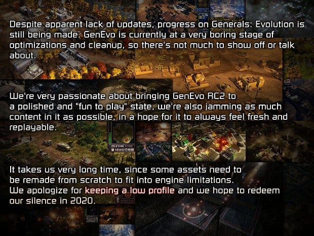 Command & Conquer: Generals Evolution — масштабный фанатский аддон, реализованный на движке Red Alert 3, в котором классические "Генералы" переосмыслены и воплощены в новом визуальном и геймплейном качестве. Мод создан как полноценная игра с переработанными юнитами, анимациями, интерфейсом и ИИ.