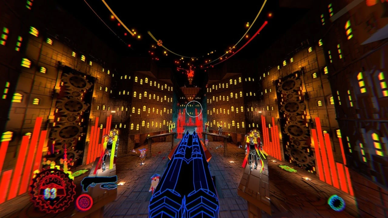REAVER — это высокодинамичный арена-шутер с видом от первого лица и графикой в стиле Low Poly, предлагающий игрокам интенсивный и зрелищный геймплей на разнообразных аренах. Сеттинг игры выполнен в мультяшной стилистике, где каждая карта насыщена яркими цветами, контрастными объектами и элементами паркура, что делает игровой процесс максимально увлекательным. Главный герой обладает высокой подвижностью: он может быстро бегать, прыгать, приседать, совершать распрыжки, отталкиваться от стен и выполнять рывки. В арсенале персонажа есть крюк-кошка, который позволяет цепляться за объекты и ускоряться, обеспечивая динамичные маневры и возможности для спидрана.