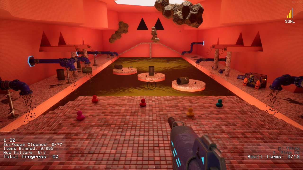 Игровой процесс сосредоточен на кооперативном взаимодействии. До четырёх участников объединяются в команду и выполняют миссии по очистке помещений. Основная механика включает тщательную мойку стен и полов, сбор разбросанных предметов и их утилизацию. Для этого используется специальный уборочный аппарат с разными насадками, которые необходимо подбирать под тип загрязнения. Физическая модель позволяет поднимать и бросать объекты, ускоряя процесс зачистки и создавая элементы тактического взаимодействия между игроками.