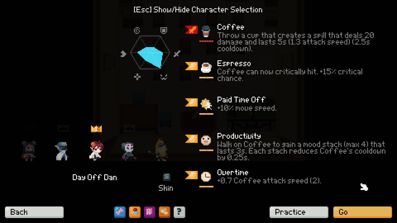 Игровой процесс вдохновлен Vampire Survivors, но с ключевым отличием — здесь игрок сам управляет прицеливанием и стрельбой. Прокачка строится на сборе сфер опыта и выборе новых артефактов, которые усиливают оружие, меняют свойства снарядов или повышают урон. Ограниченное количество слотов заставляет тщательно продумывать билд, чтобы справиться с врагами и многочисленными боссами.