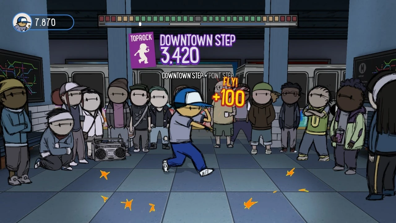 Система подсчёта очков анализирует выступление по нескольким параметрам. Баллы начисляются за музыкальность, плавность переходов, оригинальность и общее чувство стиля. Повторение одних и тех же движений снижает итоговый результат, поэтому игроку необходимо постоянно искать новые решения. Система прогресса строится вокруг открытия новых персонажей, сцен и возможностей для выступлений. По мере продвижения усложняются требования к танцам, что стимулирует развитие навыков и более глубокое понимание механик.