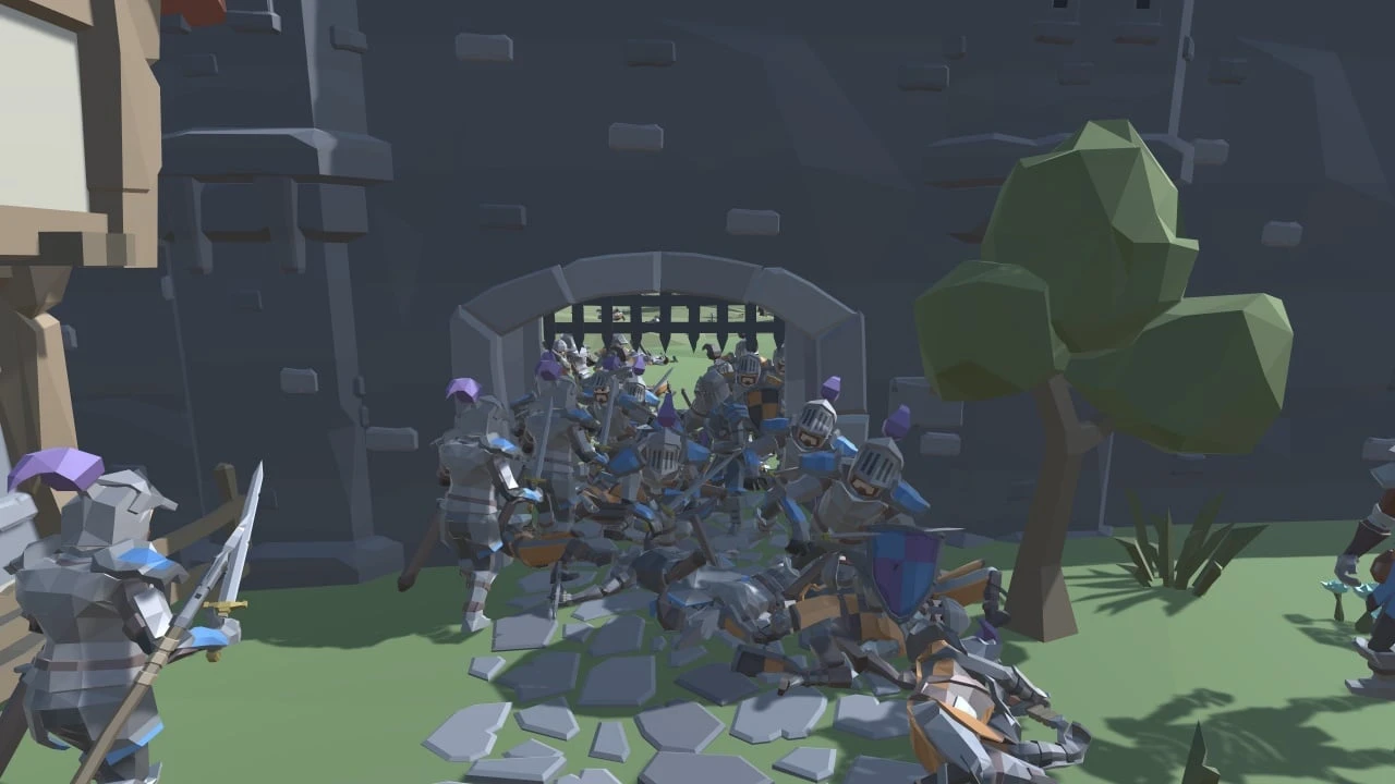 Village Feud представляет собой стратегическую игру в реальном времени с уникальной механикой управления армией и возможностью непосредственного участия в сражениях от первого лица. Сеттинг игры переносит пользователя в низкополигональный мир с живописными лесными массивами, горными пейзажами и зелёными равнинами. Центральный конфликт развивается вокруг вражды двух соседствующих государств, стремящихся захватить контроль над землями, что создаёт динамичную и напряжённую атмосферу кампании. Игровой процесс объединяет элементы строительства, управления экономикой, вербовки войск и стратегического планирования, создавая комплексную систему прогресса для игрока. Пользователи могут переключаться между стратегическим режимом управления армией и видом от первого лица, чтобы лично вести бой и использовать уникальные возможности каждого солдата.