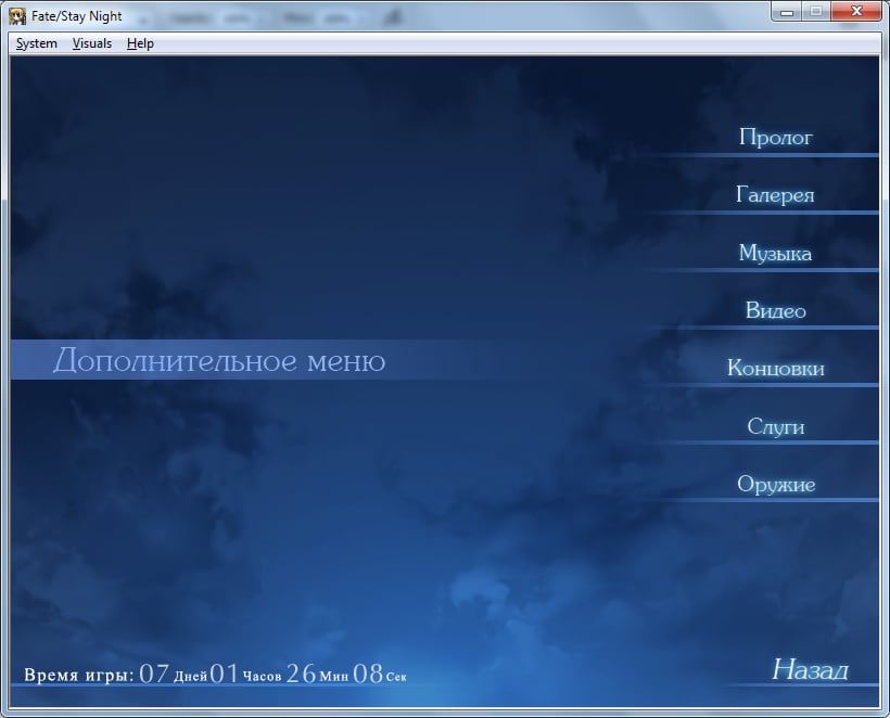Запустить Fate/stay night через исполняемый файл.